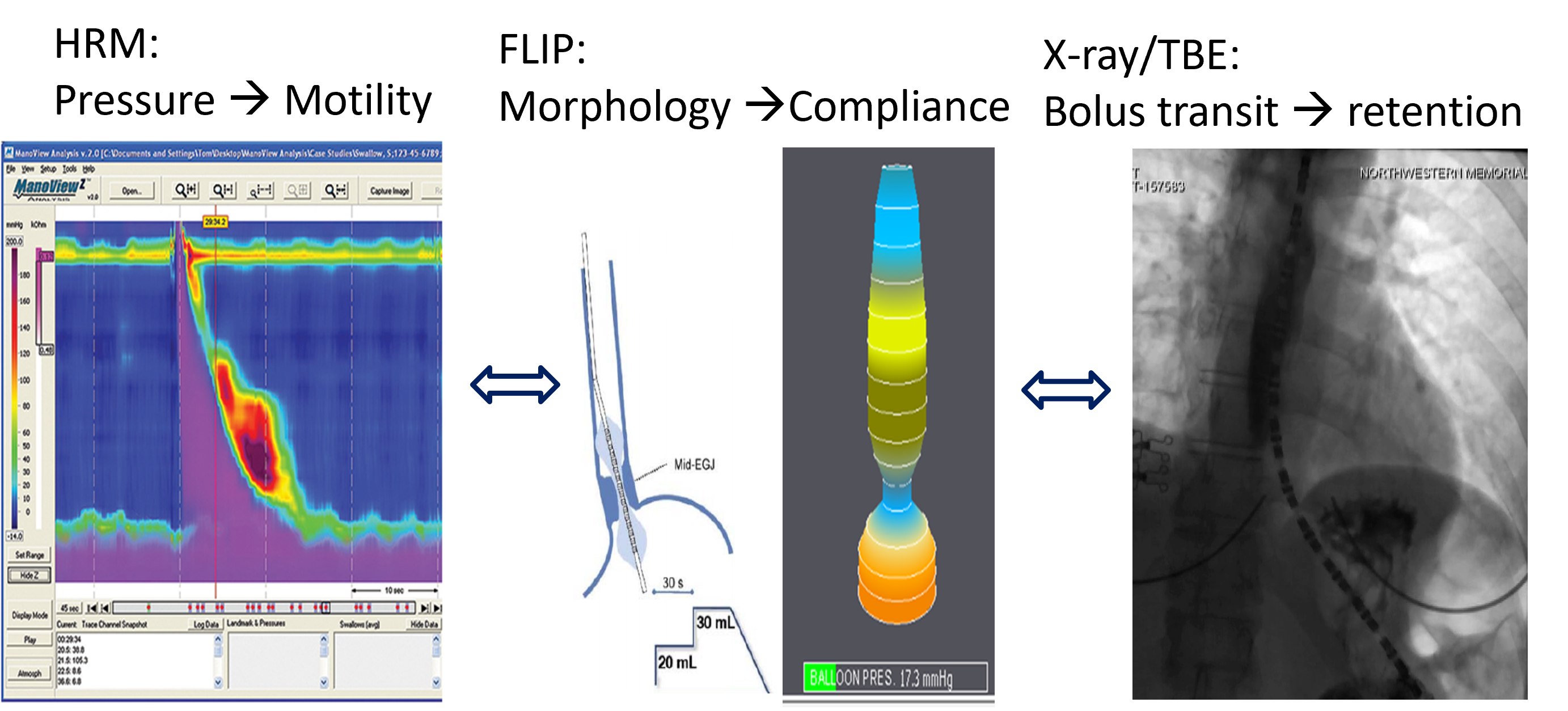 Novel outcomes related to motility (intra-bolus pressure), compliance (distensibility index along body and EGJ), transit (4-phase bolus time history and retention).